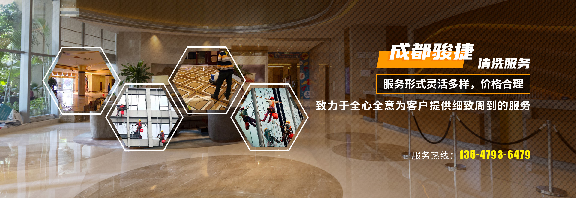 成都駿捷清洗服務有限責任公司是一家經過成都市工商總局正式注冊,擁有合法經營執照的正規企業。專業從事酒店、食堂、學校、機關單位油煙管道清洗,煙道清洗,石材翻新、石材養護、石材打磨+外墻清洗服務的清潔技術公司,我公司將人性化的服務模式及專業的清洗技術融為一體,擁有嚴格的管理制度、先進的設備、優質的服務質量,精湛的技術。清洗維修技師都具備多年清洗、維修、 安裝經驗,并不斷吸收新的技術和先進的檢測設備來滿足廣大客戶的需求。所有的工作人員上崗前都必須經過嚴格的崗前培訓及思想素質的提升,并通過統一的考核方可